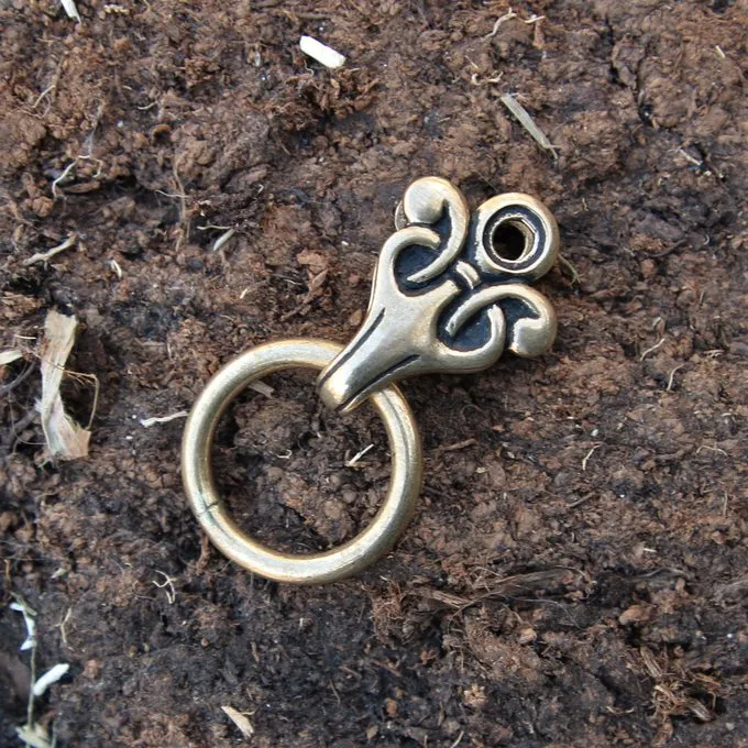 Cet ajustement est basé sur un original 9ème-10ème siècle creusé dans la ville viking de Birka. Cet ajustement a été utilisé sur un fourreau de couteau. Le montage a été utilisé pour fixer le fourreau à la courroie avec une courroie.