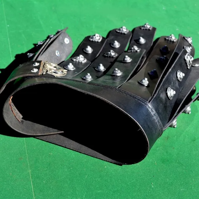 Pour attacher votre armure ou cotte de maille en toute sécurité, vous pouvez attacher des lacets en cuir à votre gambeson et les attacher à votre armure / cotte de maille. L’armure reste ainsi en position pendant un combat.