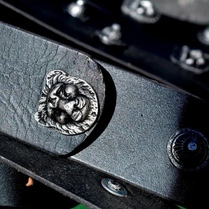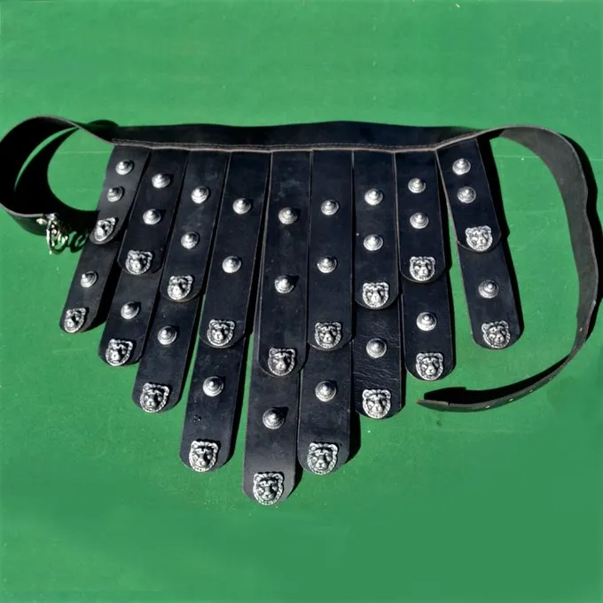 Tabliers courroies de ce genre ont été portés devant la musculata. La ceinture de tablier a été porté jusqu’à la période romaine empereur. Il pèse environ. 1,7 kg.