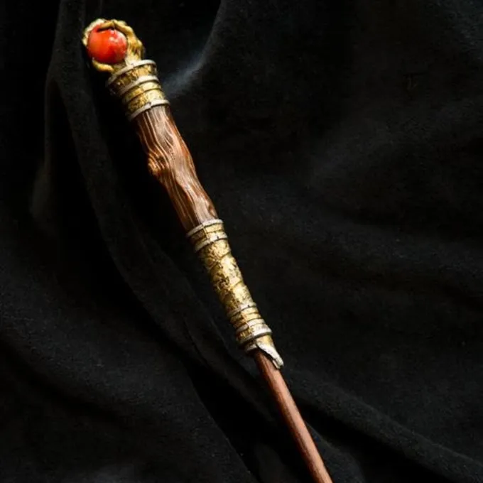 Cette baguette est conçue de façon réaliste qu’il semble être en bois avec des griffes de coq sur la poignée tenant une pierre précieuse de couleur. La poignée a aussi une bande de couleur argent avec des symboles runiques pour plus de puissance avec votre magie. La baguette magique est fait de bois et présente une poignée en mousse de polyuréthane. Vous pouvez séparer la poignée de la baguette et le mettre sur d’autres baguettes magiques Epic Armoury, pour une meilleure personnalisation et le remplacement des pointes cassées. Cette baguette nécessaire peu d’entretien et est parfait pour LARP ou cosplay de Harry Potter, et d’autres animaux fantastiques mondes magiques.