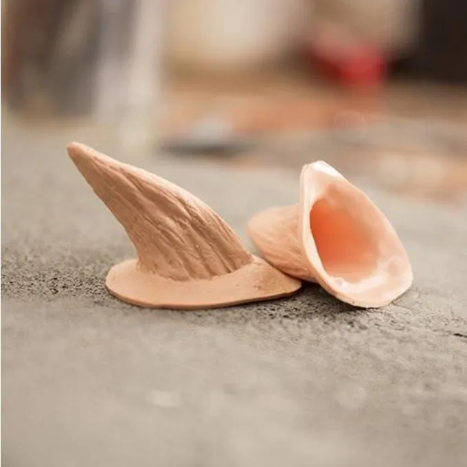 Les cornes du diable, fabriqués à partir de latex 100%. Ces cornes peuvent facilement être appliqués par Mastix Gum Esprit et enlevés avec Mastix Esprit Gum Remover. La gomme et décapant ne sont pas inclus dans les cornes. La longueur de chaque corne est d’environ 2,5 cm, la largeur est de 2,5 cm et environ 6 cm les poignardant sur le front.