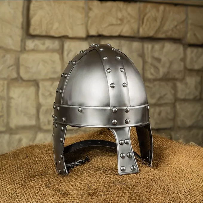 Un casque parfait pour Viking LARP. Cette spangenhelm est inspirée par les casques que les Vikings portaient. Le casque a des volets de la joue, un développement de casques romains. Le casque comporte une pièce nasale qui fournit une protection à l’ensemble du visage sans se balade le champ de vision.