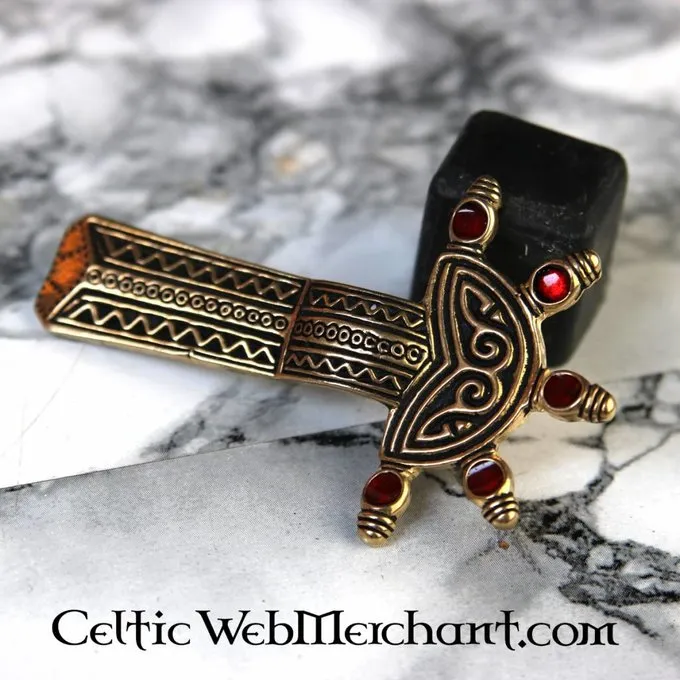 Ce péril de l’arc est une réplique d’un original mérovingien, trouvé dans la tombe d’une femme du 5ème au 6ème siècle. Des fibules d’étrave semblables étaient principalement utilisées par les peuples germano-occidentaux, comme les Francs, les Mérovingiens, les Alamans et les Tungrii. Mais des tombes ont été trouvées dans les tombes anglo-saxonnes et lombardes. Cette fibule d’arc est décorée d’émail rouge.