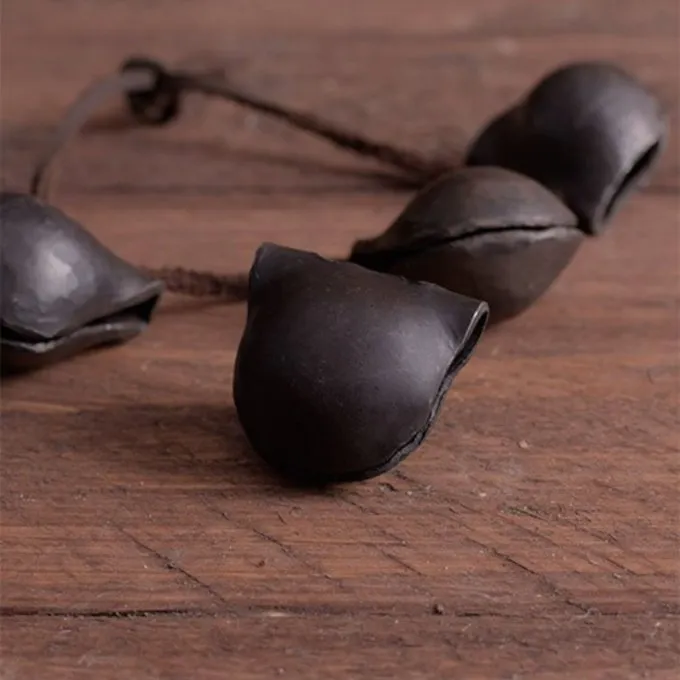 Cette petite cloche est forgée à la main en fer. Les cloches comme celle-ci étaient principalement utilisées au Moyen Âge et cousues sur des vêtements pour la décoration.