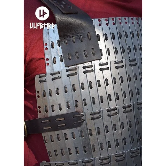 Cette armure précoce à l’échelle médiévale est basée sur plusieurs originaux, par exemple ceux trouvés dans Visby et Birka. armure d’échelle a été porté dans toute l’Europe à partir du 4ème siècle après J.-C.. De la grande variété de découvertes archéologiques, on peut affirmer que l’armure d’échelle était populaire parmi ao l’auxiliae romaine, les tribus germaniques et franques, les Vikings, les hordes mongoles et traditionnellement aussi avec les Perses.